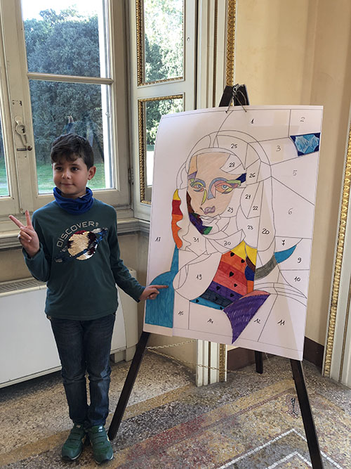 Laboratorio per bambini. In questa giornata numerosi bambini accompagnati da genitori, nonni o zii, si sono dilettati a colorare un pezzo di puzzle a scelta per reinterpretare il famoso dipinto leonardesco della Gioconda. Il laboratorio è stato curato ed organizzato da Fiorella Schiatti in collaborazione con Santina Galgano. |