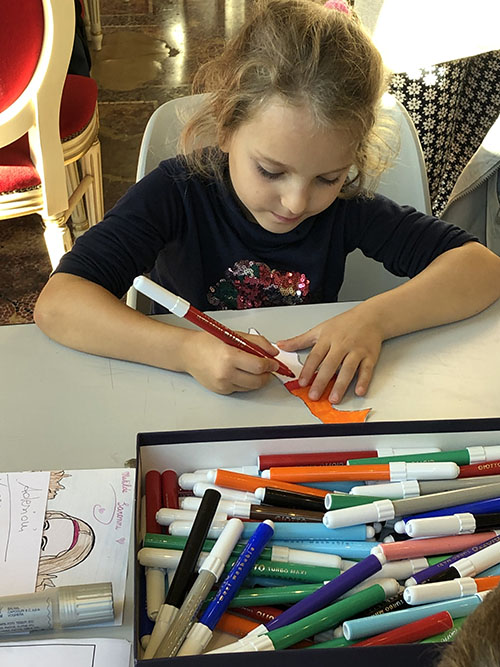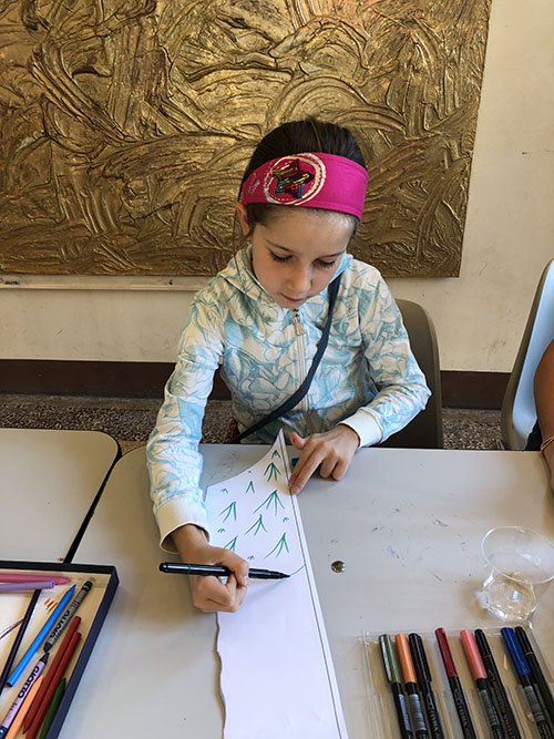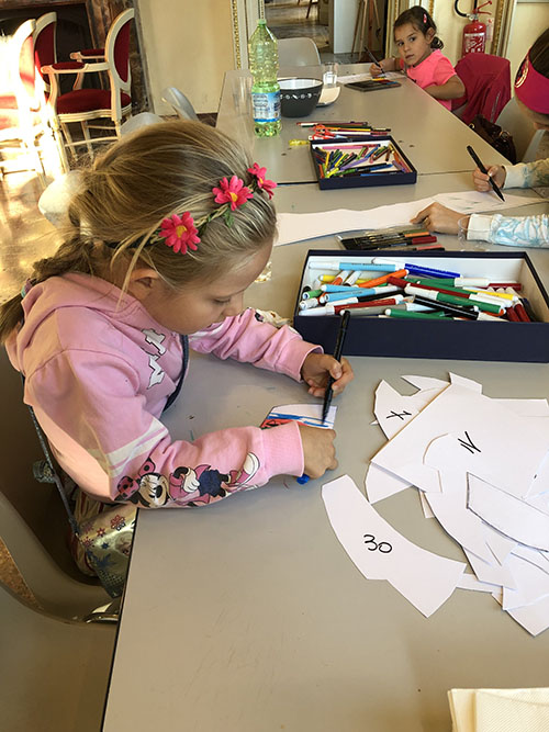 Laboratorio per bambini. In questa giornata numerosi bambini accompagnati da genitori, nonni o zii, si sono dilettati a colorare un pezzo di puzzle a scelta per reinterpretare il famoso dipinto leonardesco della Gioconda. Il laboratorio è stato curato ed organizzato da Fiorella Schiatti in collaborazione con Santina Galgano. |